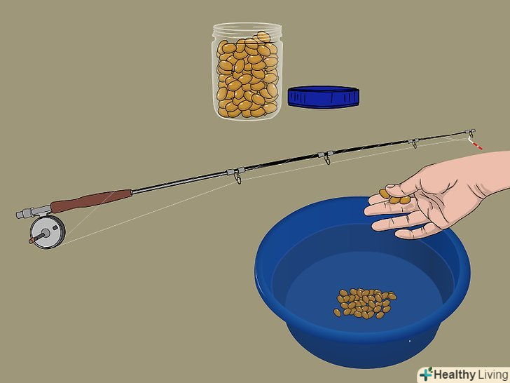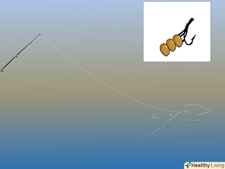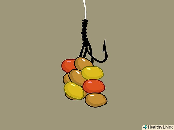 Насадіть кілька зерен кукурудзи на гачок і киньте його в воду.- (Вам не потрібно закидати вудку: гачок повинен бути в декількох метрах від вас.)