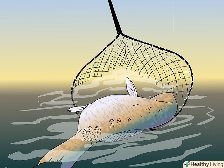Намотуйте волосінь повільно і рівномірно. ці риби можуть різко потягнути в іншу сторону, якщо їх налякати. У міру того, як риба видихається, поводите вудкою вгору-вниз. Це може здатися дивним, але таким чином риба буде не здатна чинити опір з усією силою.