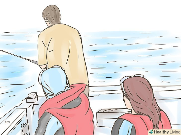 Приготуйтеся до морської хвороби. Океан може дуже сильно розгойдати човен. Якщо ви починаєте відчувати себе болісно, залишайтеся на палубі, де є свіже повітря і менше качає. Якщо ви схильні до морської хвороби, прийміть ліки перед посадкою на човен.- Якщо ви вже знаєте, що ви схильні до морської хвороби, прийміть половину Драмаміну за ніч до посадки, і другу половину за півгодини або перед посадкою на човен. Дивіться на горизонт, коли відпливаєте, це допоможе вам від заколисування.
