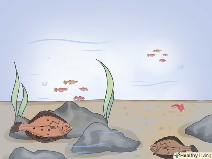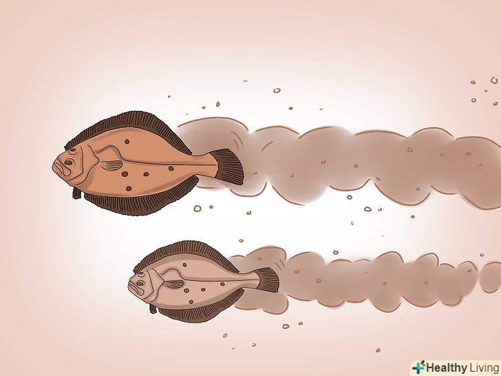 Шукайте камбалу під виступами. Камбала любить полювати біля рифів і укосів. Шукайте місця, де дрібне дно переходить в глибоке. [1]- Одним із способів з'ясувати дно – це походити по ньому самим, перед тим, як закидати волосінь. Відчуйте дно своїми ногами, щоб визначити, де може знаходитися камбала.