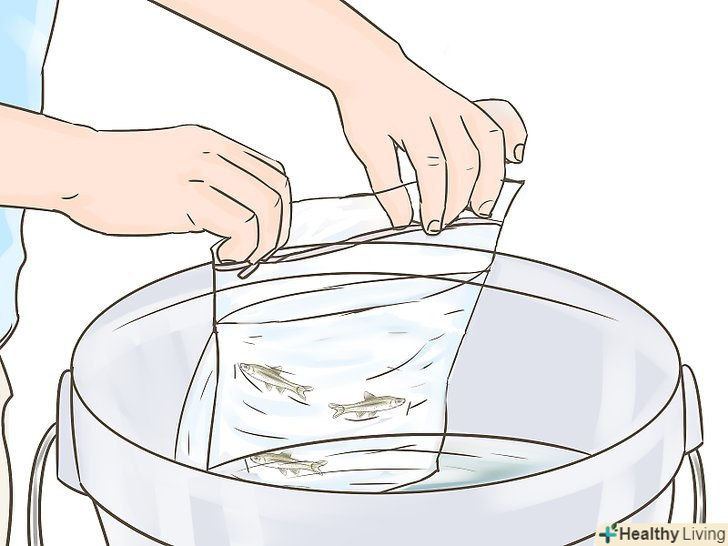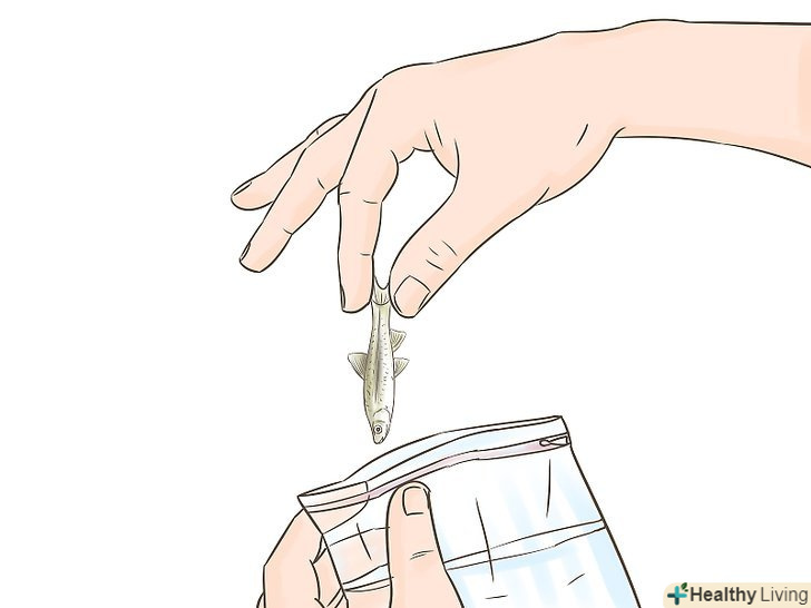 Залийте воду з озера, річки або дистильовану воду в пластиковий пакет на застібці і акуратно додайте ваших піскарів.