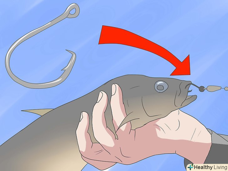 - При другому варіанті ви даєте рибі можливість проковтнути наживку. Але збільшується ймовірність, що вона занадто глибоко заковтне гачок. Це може завдати серйозної шкоди рибі, яку ви потім будете відпускати. [6]