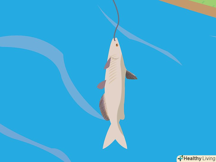 - Встановіть гачок. різким рухом смикніть кінець вудилища вгору на висоту в 30 — 60 см.Якщо ви зачепили рибу, то вудка буде в постійно зігнутому положенні. Повільно починайте крутити котушку, утримуючи кінець вудки на рівні вище голови. Якщо ви будете тримати вудку нижче, то риба може зірватися, так як вона досить сильно б'ється об воду. Дотягнувши рибу до берега, візьміть вашу мережу і акуратно помістіть її туди.