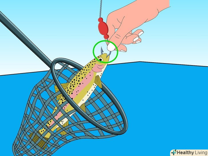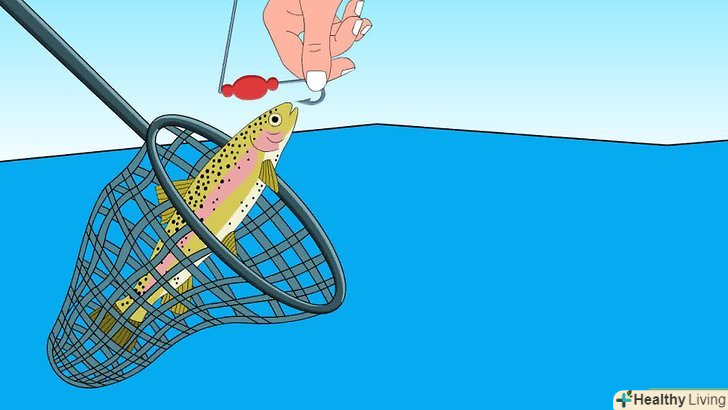 Збережіть популяцію риби. якщо ви не хочете залишати рибу, то дуже важливо, щоб ви взагалі не чіпали її руками. Форель, як і будь-яка інша риба, має захисний шар слизу. Будь-яке ваше дотик пошкоджує цей шар, а риба отримує щось на зразок опіку. Більшість форелей виживають, коли їх відпускають правильним чином. Перед тим як взяти рибу, змочіть руки і мережу. Постарайтеся тримати рибу у воді, пальцями або пінцетом схопіть гак за вигин і обережно відчепіть від риби. Ідея полягає в тому, щоб висмикнути гачок по тій же траєкторії, по якій він увійшов. Якщо риба заковтнула гачок, то вам доведеться відрізати Волосінь і постаратися сильно не смикати за гак, інакше є велика ймовірність пошкодити нутрощі риби, після чого вона навряд чи виживе. Будьте гранично обережні, не здавлюйте рибу, так як це може викликати внутрішню кровотечу і рибу спіткає довга і болісна смерть.