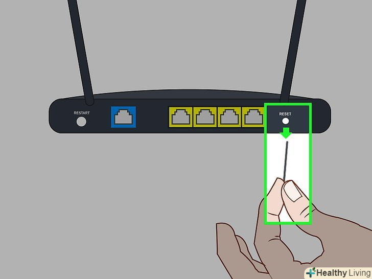 Перезавантажте маршрутизатор. за допомогою розігнутої скріпки (або аналогічного предмета) Натисніть і утримуйте кнопку «Скидання» протягом тридцяти секунд.
