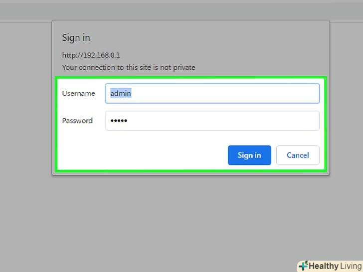 Введіть ім'я користувача та пароль, щоб відкрити сторінку конфігурації маршрутизатора. сторінки конфігурації багатьох маршрутизаторів захищені основними ім'ям користувача і паролем (наприклад, «admin» і «password»), які можна знайти в інструкції до маршрутизатора.- Якщо ви змінили основні облікові дані і не пам'ятаєте їх, перезапустіть мережу .