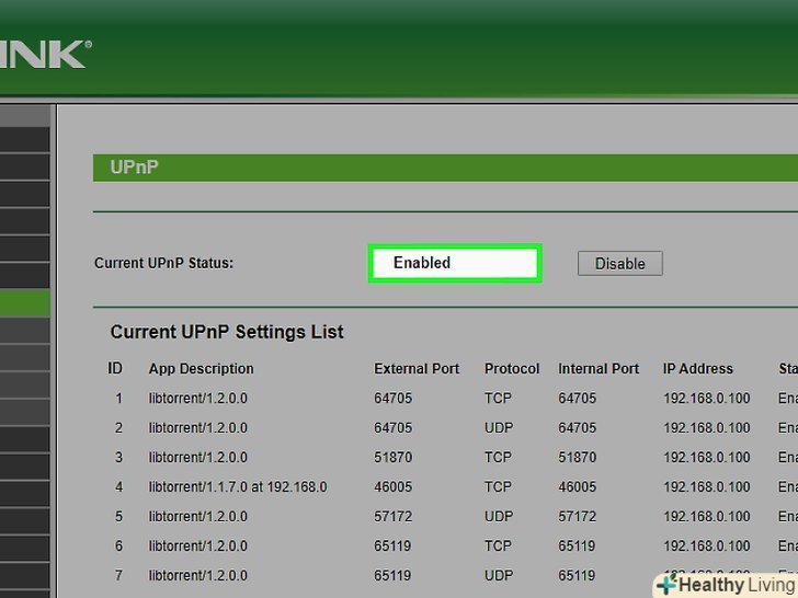 Знайдіть опцію «UPnP». вона дозволяє підключеним пристроям автоматично відкривати порти, необхідні для підключення до Інтернету.