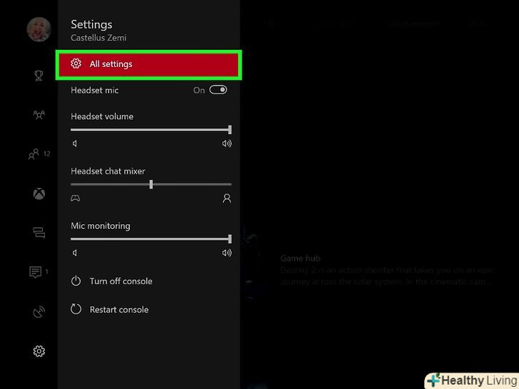 Натисніть кнопку "Guide". вона позначена логотипом Xbox і знаходиться в центрі контролера. У лівій частині екрана телевізора відкриється бічна панель.