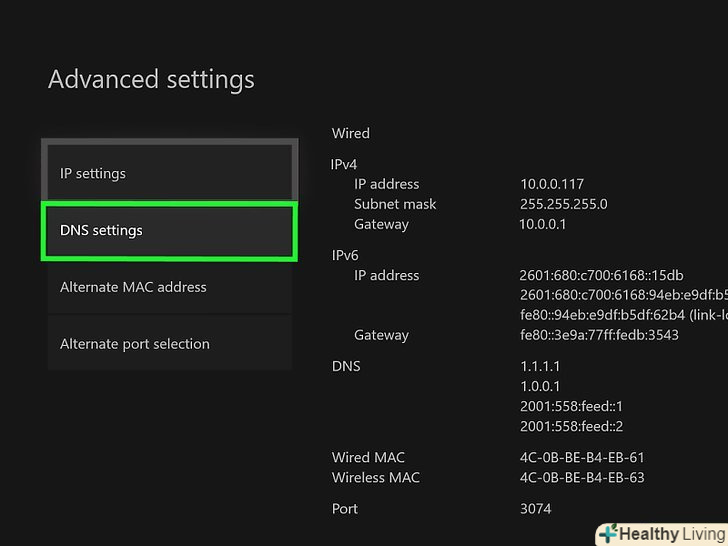 ВиберітьПараметри DNS, а потім натисніть A . ви знайдете цю опцію в лівій частині сторінки.