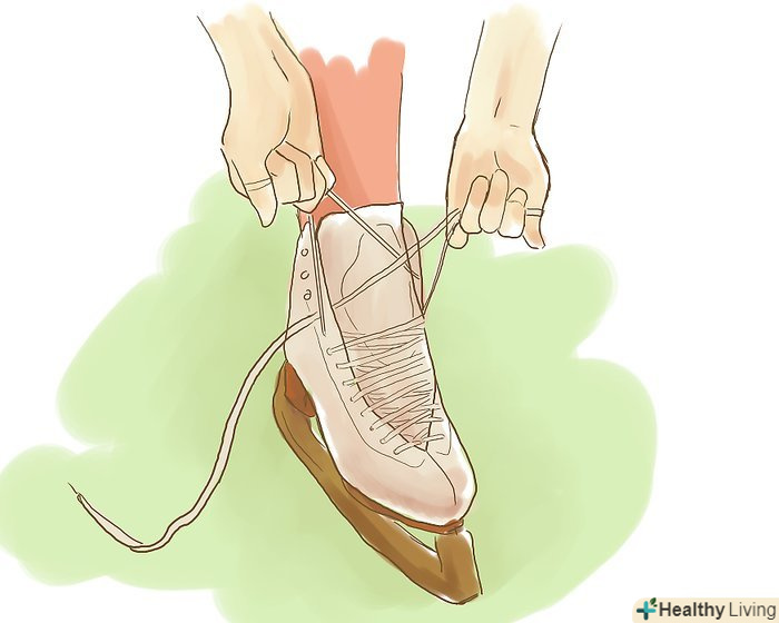 Правильно зашнуровуйте ковзани кожен раз. правильна шнурівка необхідна, щоб забезпечити стійкість і комфорт під час катання.- Просуньте ступню в черевик до кінця і затягніть шнурок в передній частині черевика. Шнурівка повинна бути міцною, але не дуже тугий.