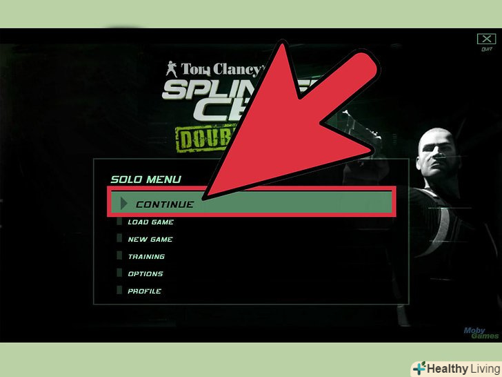 Запустіть Splinter Cell. гра Splinter Cell дозволяє вам завантажити через себе стороннє програмне забезпечення. Цей процес не спрацює в іграх Pandora Tomorrow або Chaos Theory; повинна використовуватися тільки оригінальна версія гри.- З головного Меню, виберіть Почати гру. У профілях виберіть "Linux".