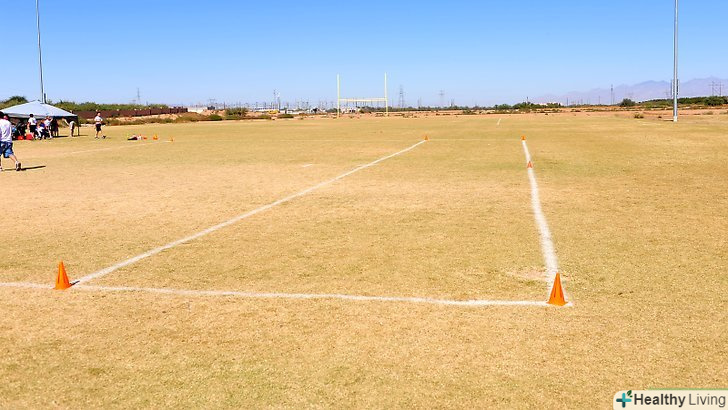 Позначте ігрове поле, позначивши лінію воріт на протилежних кінцях. гравці не повинні заходити за бічну лінію. Рекомендовані розміри поля: 27.4 метра на 64 метри з зоною захисту ще по 9.1 метрів. Однак ви можете вибрати поле поменше, наприклад, як футбольне.