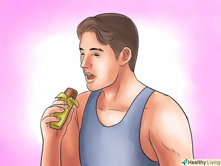 За півтори години до тренування з'їдайте легку їжу або батончик спортивного шоколаду. після пробіжки можна їсти через приблизно 30 хвилин.- Частий прийом їжі з великим вмістом білка дозволяє тримати рівень крові в нормі і позбавляє від запаморочень.