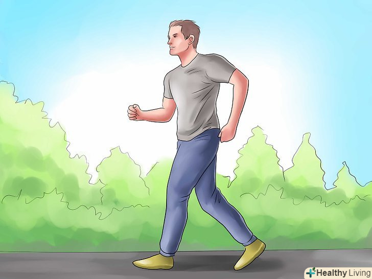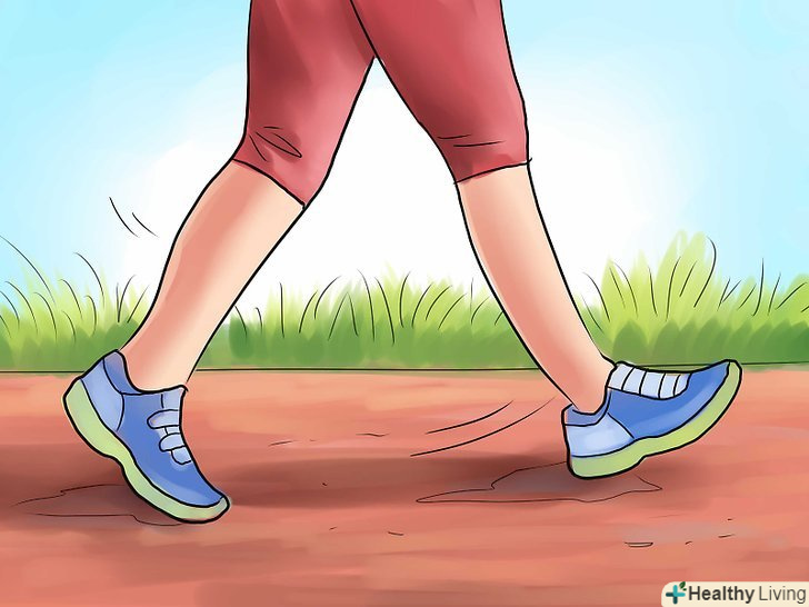 Почніть з розігріваючої ходьби. Ідіть досить швидко, так, щоб вам не вистачало дихання на розмову. [4]