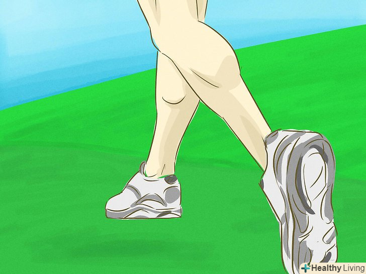 Виконайте динамічні вправи на розтяжку на рівній місцевості. незважаючи на те, що ви будете збігати з пагорба, вам слід робити розтяжку на рівній місцевості, щоб не перевтомитися. Динамічні вправи на розтяжку виконуються під час ходьби і допомагають уникнути травм, якщо виконувати їх перед спринт-тренуванням.- Намагайтеся розминатися приблизно 5-10 хвилин перед тим, як втекти з гірки спринтом. Для тренування даного виду особливо підійдуть такі вправи, як ходьба з високим підніманням колін, биття по сідницях при бігу на місці і «олов'яний солдатик». Розминайтеся, поки не відчуєте прилив сил, а не втому. [12]