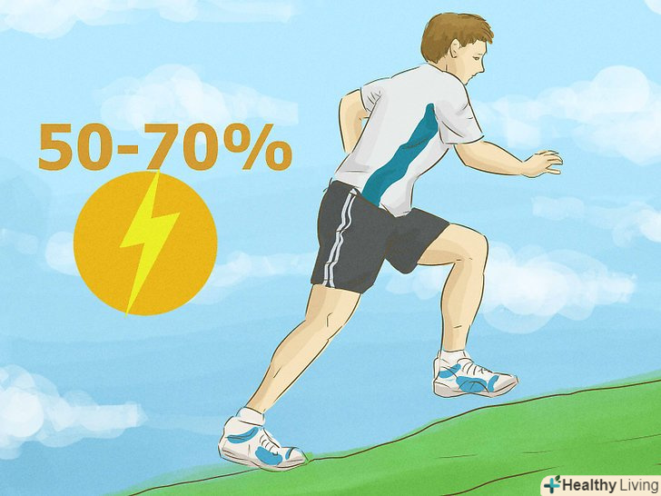 Вкладіть в перший спринт приблизно 50-70% своєї енергії. ви можете збільшувати її при кожному забігу, але тільки на 10 %. Якщо ви новачок в спринті або рівень вашої фізичної підготовки далекий від ідеального, ймовірно, підвищувати інтенсивність забігів варто лише після третьої-четвертої тренування і не напружуватися щосили на перших порах. [13]