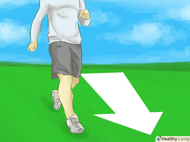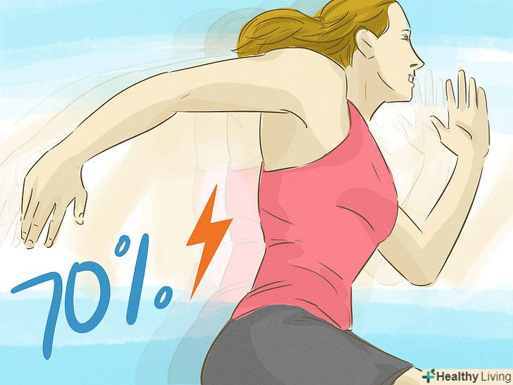 Вкладіть в перший спринт приблизно 70% своєї енергії, потім прискортеся. не вичавлюйте з себе всі соки відразу. Це може призвести до травми, особливо якщо ви не наділи відповідну форму або не розім'яли свої м'язи. [4]- Вкладіть приблизно 80% своєї енергії в другий спринт; якщо після цього ви не відчуєте біль в суглобах або м'язах (ознаки того, що вам не варто поспішати), наступного разу ви зможете викладатися майже повністю або навіть на всі сто. Біль при спринті може бути сигналом про те, що вам слід приділяти розминці більше часу або підібрати відповідну форму.