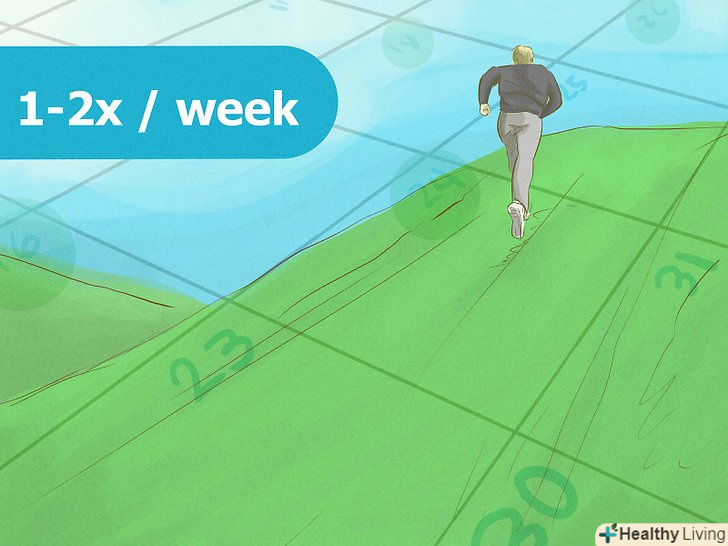 Виконуйте 1-2 забігу в тиждень. оскільки подібні тренування вимагають самовіддачі і великих зусиль, вам слід бігати в гору приблизно два рази на тиждень з інтервалом в кілька днів, щоб ваші м'язи могли відновлюватися.