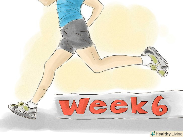 Поміняйте розпорядок на 5-му тижні. Продовжуйте збільшувати швидкість. Дотримуйтесь такого розпорядку:- Понеділок: біг 3 км