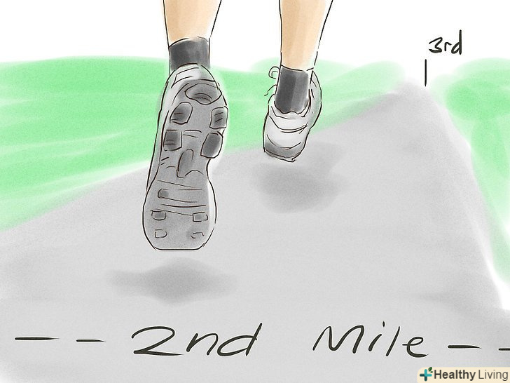 - Якщо ставати зовсім несила, розбийте біг на етапи. Тільки ще 400 м до перехрестя або поштової скриньки не так важко, як пройти пішки 1.5 км. коли ви досягнете свого першого етапу, встановити нову мету.