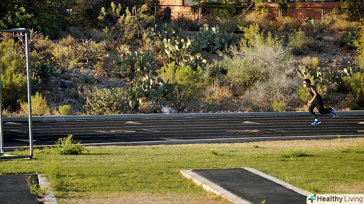 Збільште інтенсивність тренувань в період липня-серпня, додавши просунуті аеробні вправи і спеціалізовані дистанції. після того, як ви вийдете на заплановану щотижневу дистанцію, включіть в програму спринт на 800 метрів в помірному темпі. Наприклад, 12 х 100 в темпі 800м (тобто темпі, в якому ви збираєтеся бігти дистанцію 800м), з яких 300м – біг підтюпцем. Це послужить базою для подальшого збільшення швидкості, забезпечить необхідну м'язову пам'ять і дозволить бігти ефективно не напружуючись. Також ви можете включити в свій план тренування на біг 5км. Прекрасним способом опрацювати різні фізіологічні системи без надмірного стомлення будуть тритижневі циклічні тренування (тобто з інтервалом три тижні ви виконуєте один забіг на час, один день бігу на середні дистанції (2км), два дні бігу на 5км, один день бігу на 3км і один день бігу в гору на 200м). Таким чином, цей план складається з дистанцій, 33% яких спрямовані на збільшення лактатного порогу, 33% на підвищення засвоєння кисню і 33% на засвоєння кисню в умовах максимального навантаження.- Для тих, хто концентрується на легкоатлетичному кросі, можлива заміна темпу бігу на більш високий (пороговий) темп. При бігу в цьому темпі в крові міститься постійна кількість молочної кислоти. Перевищення цього темпу призведе до значного накопичення молочної кислоти, що не сприятиме підвищенню здатності тіла до її накопичення і виведення.