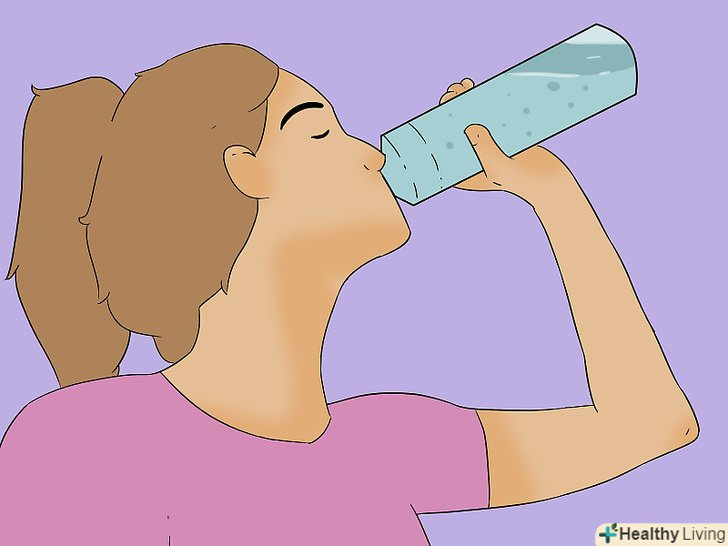 Уникайте зневоднення. ви, природно, пили багато води під час тренувань, але протягом декількох днів перед марафоном зверніть на це особливу увагу, щоб не переживати про водний баланс організму.- Коли бігаєте на довгі забіги, беріть пляшку води з собою-тримайте її або в руці, або на поясі. Так ви зможете уникнути зневоднення під час бігу.