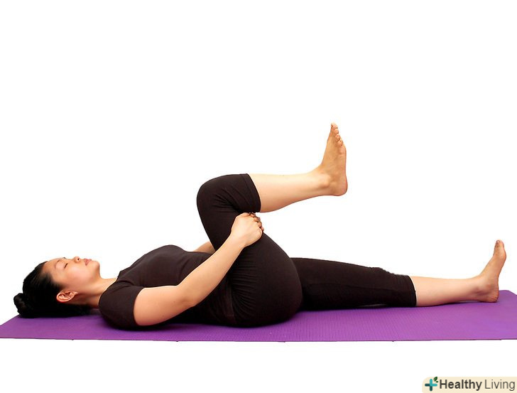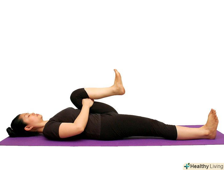 Ляжте на спину на килимок для йоги або гімнастичну лаву. ваші ноги повинні бути максимально випрямлені вздовж килимка або лави.