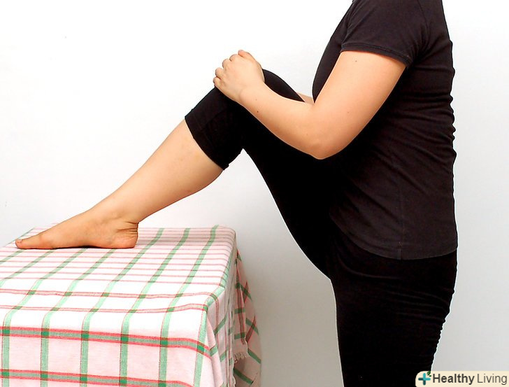 Перенесіть вагу на ліву ногу і зігніть праве коліно, розташовуючи його на поверхні столу.