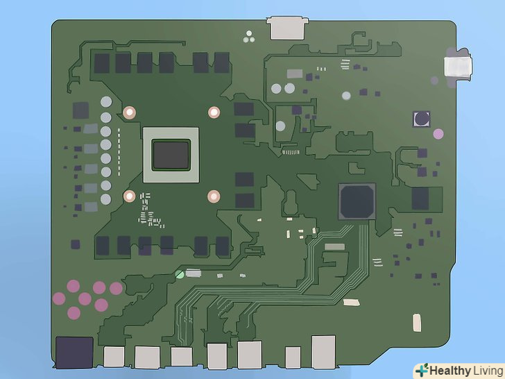 Материнська плата.також вам тепер видно материнська плата. Ви можете акуратно дістати її, тримаючи за сріблясту коробку в центрі.- Доступ до материнської плати дає вам можливість полагодити систему охолодження (головну причину «червоного кільця смерті»), перепаявши або закрутивши нові гвинти. Також ви можете встановити нове програмне забезпечення, поміняти прошивку або встановити інші модифікації, на зразок reset glitch hack. Але тільки пам'ятайте, що це дуже важкі операції, причому навіть для досвідчених людей, і за них можна отримати «бан» від Microsoft.