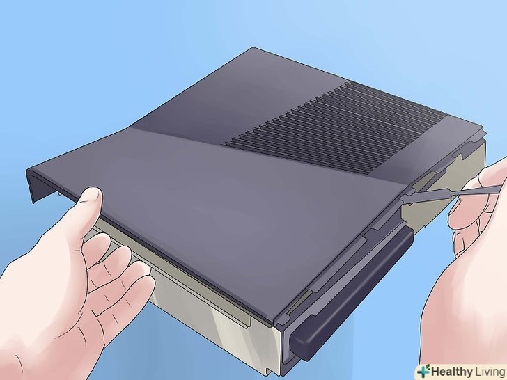Відкрийте корпус.поверніть консоль передньою стороною і знайдіть біля DVD-приводу засувку. Її можна легко відкрити нігтем або плоскою викруткою. Всього на цій стороні 4 засувки, які можна відкрити по одній.