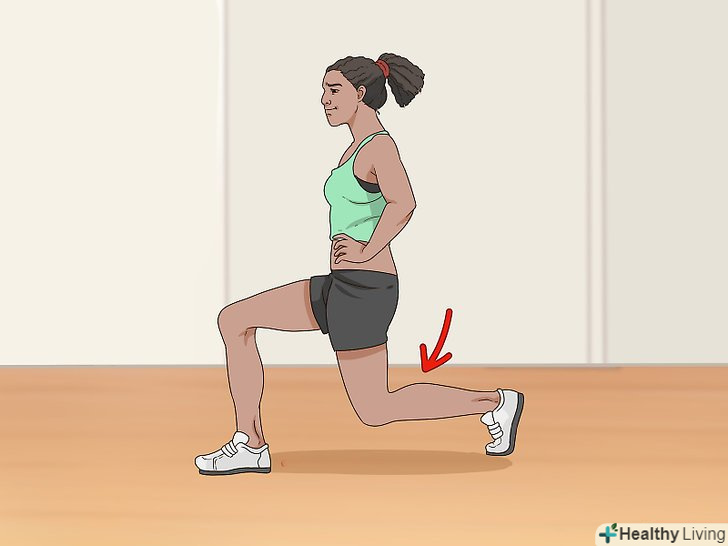 Тримайте м'язи тулуба напруженими. Нога, на якій ви стоїте, повинна бути прямою. Коліно має бути прямим, але не вигнутим назад, а тіло - натягнутим.- Слідкуйте за станом коліна. Щоб його не затиснуло, можна злегка зігнути ногу.