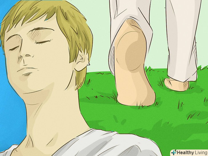 Робіть дихальні вправи. Пам'ятайте, що необхідно не тільки працювати над зміцненням серця і м'язів, але також і над зміцненням легенів.- Робіть глибокі вдихи животом, сидячи або лежачи на спині. Покладіть руку на живіт, щоб переконається, що під час дихання він рухається вгору і вниз. Рахуйте до 8 для кожного вдиху і видиху. Повторюйте вправу протягом 3-5 хвилин.