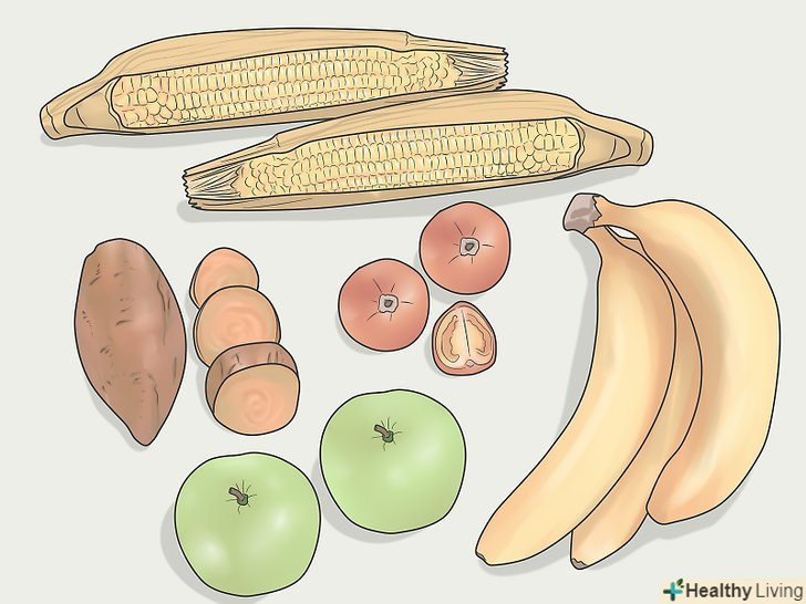 Їжте корисну їжу, багату складними вуглеводами. складні вуглеводи, які містяться, наприклад, в овочах, солодкій картоплі і цільнозернових продуктах, дадуть вам багато довгограючої енергії для тренувального режиму. Обов'язково їжте багато корисних фруктів і овочів, а також отримуйте білки з бобових і пісного м'яса, щоб давати організму все необхідне для відновлення, і, відповідно, продовжувати бігати. [10]- Уникайте напівфабрикатів, білого хліба і червоного м'яса, які можуть містити велику кількість добавок і обтяжувати організм.
