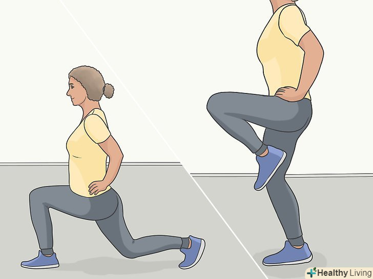 - Зробіть кілька випадів, щоб розігріти м'язи стегна і гомілки.