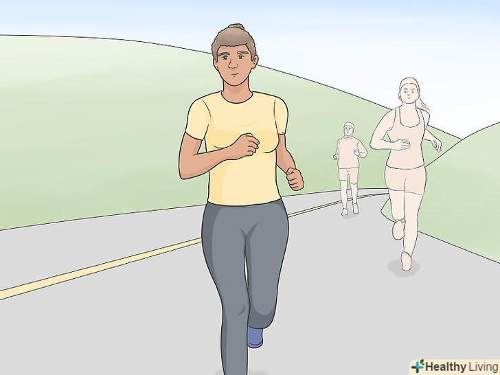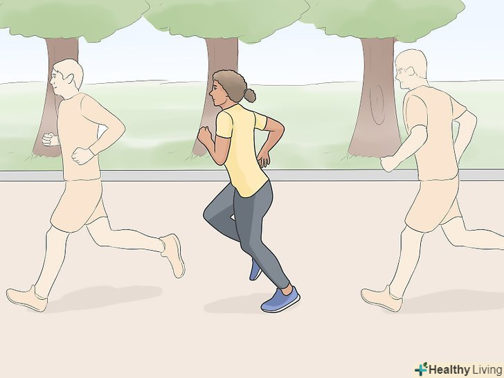 Не думайте про інших бігунів поруч з вами. головне — зберігати концентрацію на підтримку особистого темпу, тому не відчувайте тиску через темп оточуючих. Підберіть свій темп і дотримуйтеся його до самого фінішу. [13]- Тривога або тривога можуть вплинути на серцебиття і дихання, через що Вам буде важче бігти в швидкому темпі.