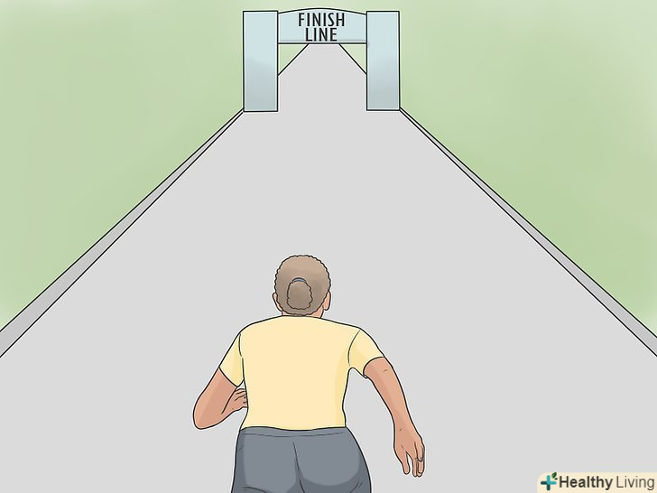 Влаштуйте спринт до фінішу, коли побачите його. до кінця забігу на 5 км ви будете почувати себе виснаженим і ослабленим, але вид фінішної риси, швидше за все, подарує вам приплив енергії. Використовуйте цю енергію, щоб потужно завершити забіг і спробувати завершити його менше, ніж за 20 хвилин. [15]- Подумайте, як далеко Ви зайшли і як старанно ви працювали. Ви майже у мети!