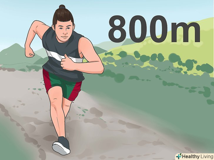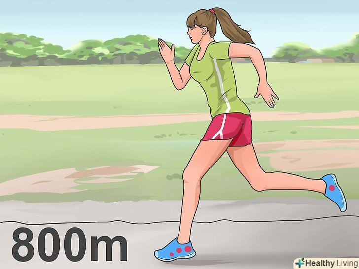 Пробіжіть 800 метрів. основне правило на середніх дистанціях (800 і 1600 метрів): бігун повинен підтримувати швидкий темп і зберегти достатньо сил, щоб зуміти зробити два різких прискорення..- Правильно починайте забіг. Біжіть швидко на тій швидкості, яку Ви зможете підтримувати. Головне тут-це сталість.