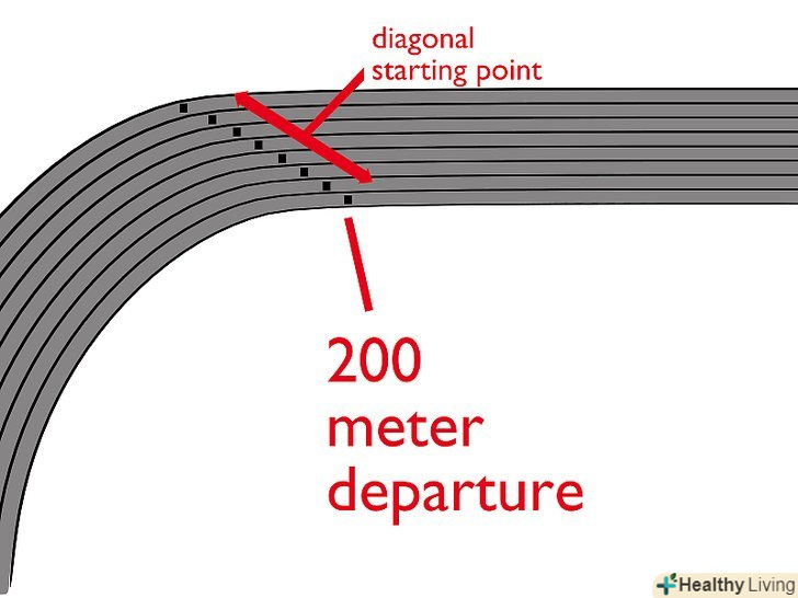 - У забігу на 200 м кожен бігун стартує зі своєї лінії. Зайнявши свою, встановіть стартові колодки і виконайте крок 3.