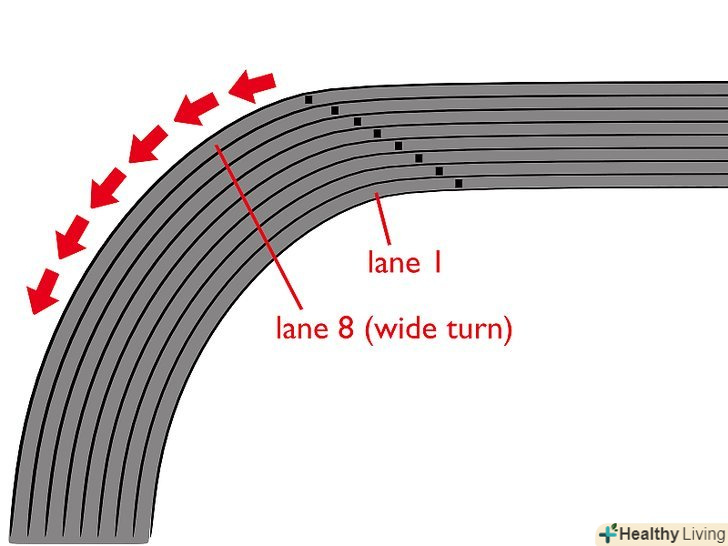 - Різні доріжки мають різний кут вигину. На першій доріжці поворот найкрутіший, на доріжках 7 і 8 — самий плавний.