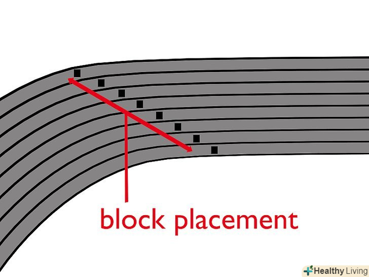 Коли стартові колодки готові, вам потрібно встановити їх відповідно до вигину доріжки. це означає, що вони будуть спрямовані не прямо, а по діагоналі.- Різні доріжки мають різний кут вигину. На першій доріжці поворот найкрутіший, на доріжках 7 і 8 — самий плавний.
