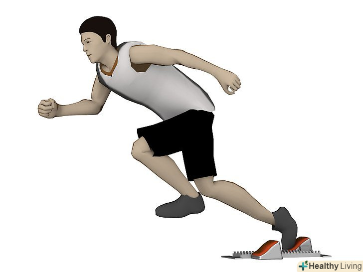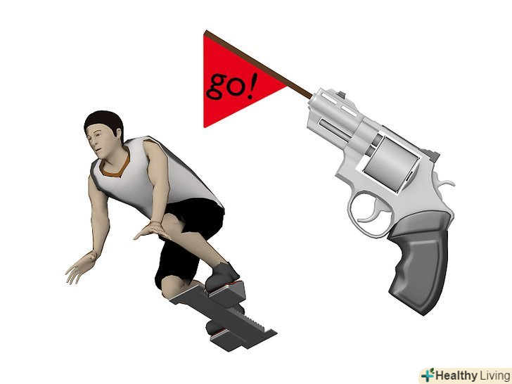 Коли буде дано постріл, біжіть, але не випрямляйтеся відразу. це означає, що перші 10 метрів вам потрібно бігти, нахилившись вперед.