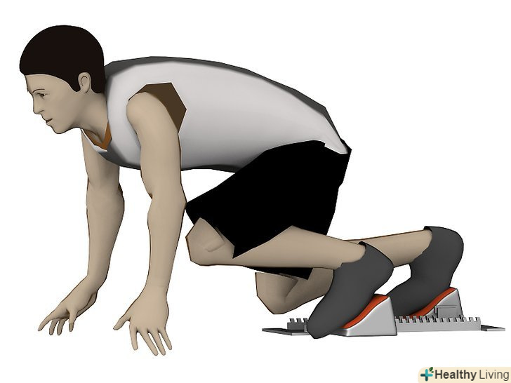 Якщо ви вирішили використовувати стартові колодки, встановіть їх так, як Вам зручно.- Якщо ви не хочете використовувати стартові колодки, переконайтеся, що це необов'язково! Для учнів їх використання не так вже необхідно, і якщо ви вчитеся без них, великий шанс, що ви стартуєте першим негайно, як буде дано сигнал. У будь — якому випадку, використовувати стартові колодки чи ні-справа вибору.