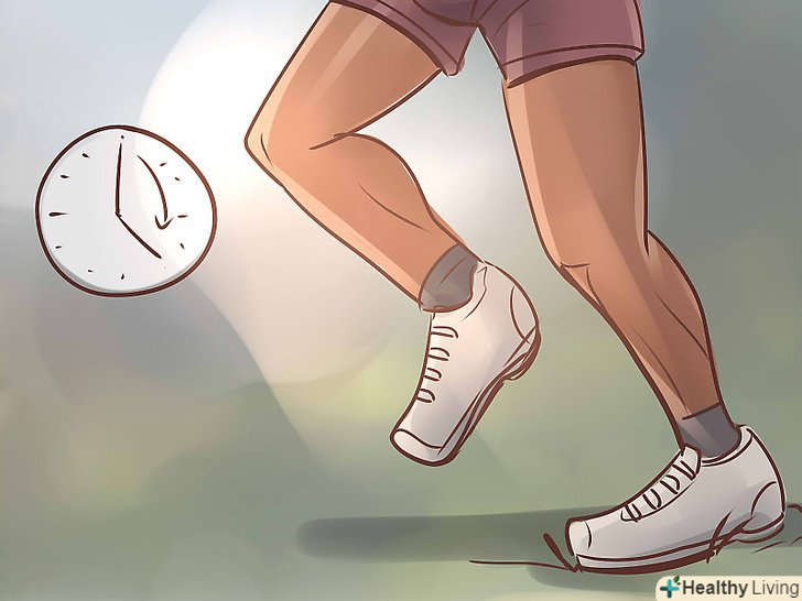 Розвивайте свої фізичні здібності. почніть з бігу на один кілометр . Багато спортсменів запитують один у одного, за який мінімальний час вони пробігають один кілометр, тому ідеально буде почати тренування саме з цієї дистанції, щоб оцінити свій поточний рівень. [2] стандартний коло на біговій доріжці стадіону дорівнює 400 м. використовуйте цю інформацію, щоб оцінити свою швидкість, здібності і витривалість на спочатку обраної дистанції для тренувань.- Бігайте з невеликим напором, але не перенапружуйтеся; і не переживайте, якщо у вас не вийде це відразу ж, так як поки ви лише оцінюєте свій початковий стан і незабаром почнете вдосконалюватися. Засічіть найкращий час, за який ви долаєте один кілометр, і виходячи з нього визначте час для звичайних тренувань – збільште собі тимчасові рамки на 1-2 хвилини, щоб бігати трохи повільніше. [3] продовжуйте бігати по дистанції з спочатку обраної швидкістю до тих пір, поки не відчуєте готовність до подальшого вдосконалення.