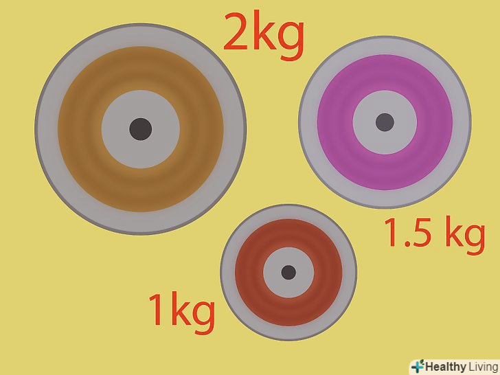 Перед тим, як почати тренування, вам потрібно підібрати собі диск. його розмір і вага буде залежати від вашого віку і статі. Підберіть собі диск відповідно до зазначеного нижче списку.- Жінки (різного віку) - диск вагою 1 кг