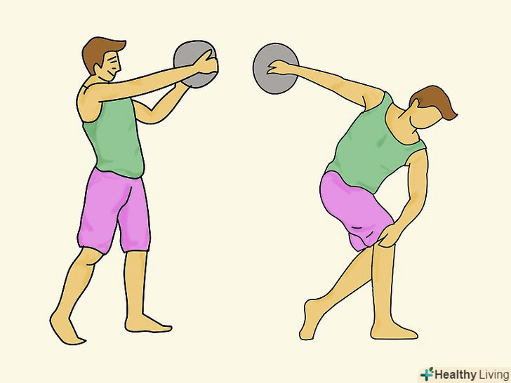 - Пам'ятайте, що рух повинен починатися з грудей. Якщо ви будете підтримувати диск лівою рукою, то ваше тіло буде рухатися як батіг, з збільшується відцентрової силою.