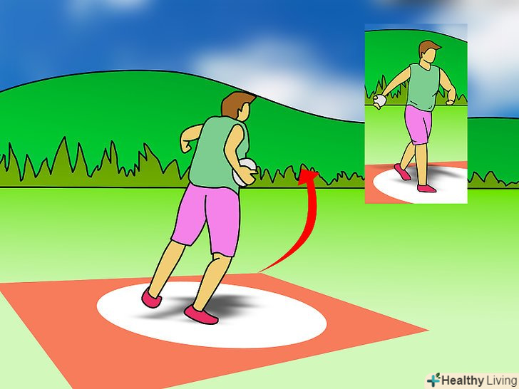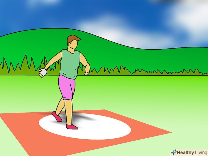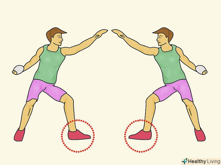 Правильно розставте ноги. у той час як ви будете махати руками і готуватися до кидка, прийміть стійку позицію. Не розставляйте ноги занадто широко, щоб можна було розгорнути тіло для кидка, а також, щоб випадково не травмувати себе.
