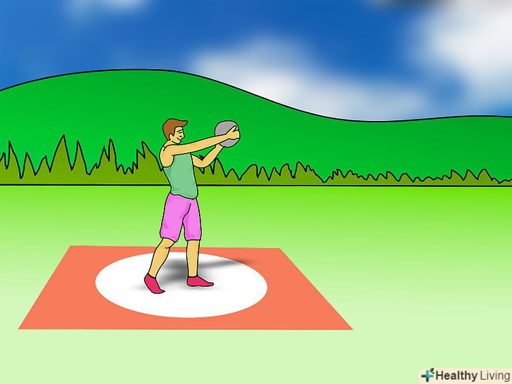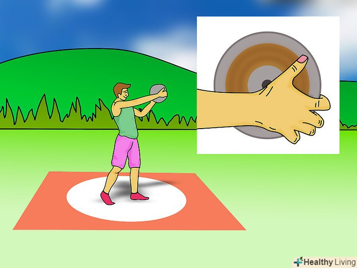- Подайте груди вперед перед кидком, щоб перемістити вагу тіла. Під час кидка не можна переступати лінію кола, інакше кидок не буде зарахований.
