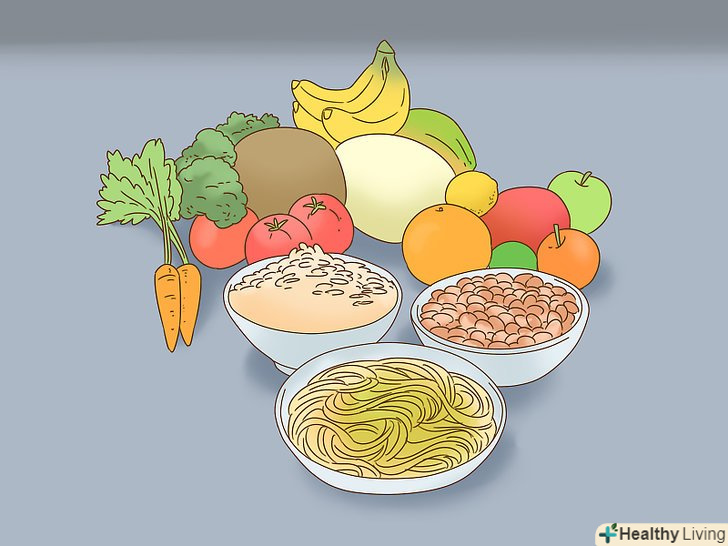У період тренувань дотримуйтеся дієти, багатої складними вуглеводами. корисні і багаті вуглеводами продукти повинні становити близько 60-70% вашого харчування. Для дієти з 2500 калорій це означає, що ви повинні щодня вживати по 1500-1750 калорій (або по 375-440 г) у вигляді вуглеводів. Хорошими джерелами складних вуглеводів є фрукти, овочі, бобові, коричневий рис, цільнозернові макарони і хліб. [11]- Одним з варіантів багатого вуглеводами добового меню може стати цільнозерновий бублик з яйцем і сиром на сніданок, цільнозернові макарони з салатом на обід, скибочки фруктів і горіхів для перекусів, а також коричневий рис з овочами на пару на вечерю.