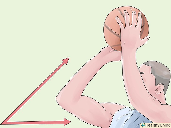 Зрозумійте сутність кидка. Коли ви кидаєте м'яч, беруть участь три фактори: кути, поштовх і положення ваших рук. Ви повинні застосовувати великий кут (розуміючи кут як перпендикулярну лінію від стегон і розширення ваших рук), якщо ви робите звичайний кидок, але менший кут, коли ви кидаєте всередині штрафного майданчика. Ви можете кидати вище, коли є захисник навпроти вас, також рекомендується кидати під кутом 45 градусів або більше, так як це допомагає залітати м'ячу в кошик м'якше і чистіше. Ваш лікоть повинен бути якомога ближче до вашого обличчя, щоб м'яч йшов по прямій лінії, і простягайте вашу руку якнайдалі, це збільшує силу кидка.
