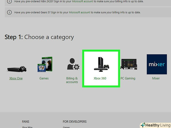 Виберіть категорію, яка найкраще підходить під вашу конкретну ситуацію або проблему з приводу Xbox Live. вам запропонують чотири варіанти: "Xbox 360," "Мій обліковий запис", "Xbox на інших пристроях"і" виставлення рахунків". Наприклад, якщо вам потрібно анулювати підписку, то необхідно вибрати "Мій обліковий запис".[1]